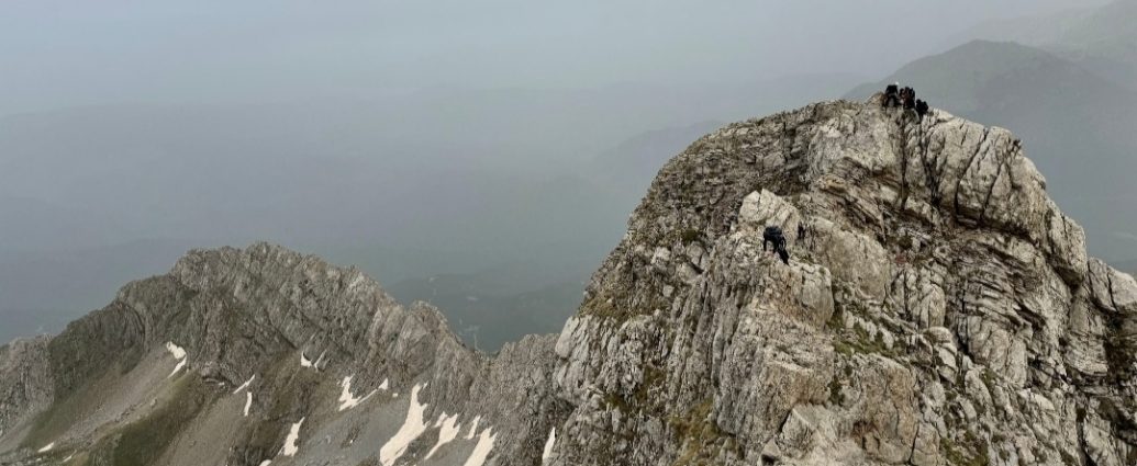Κυριακή 6/4/25: Ανάβαση νωρίς το πρωί από ράχη έως πάνω από τα Σκόρδα Μουσουνίτσας όπου ξεκινά η κόψη. Η διαδρομή περιλαμβάνει συνεχής κίνηση σε χτένια (Ι- ΙΙΙ βαθμού) με τοπικά στενέματα, καθώς και αναρριχητικά περάσματα (II-III+ βαθμού), απαιτείται μεγάλη προσοχή στα σαθρά και υπάρχουν 4 ραπέλ έως 40μετρα το μεγαλύτερο. Η ανάβαση καταλήγει στην κορυφή Κόρακας (2.495μ.). Η κατάβαση θα γίνει από τις Κοπρισιές.