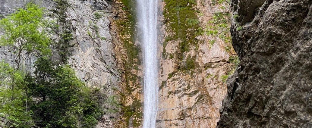 Η Β’ ομάδα θα επιστρέψει στην Τιθορέα ενώ η ‘Α ομάδα θα συνεχίσει και αφότου αφήσουμε πίσω μας τα Διπόταμα, το μονοπάτι συνεχίζει ανηφορικά στο δάσος όπου θα συναντήσουμε λίγο αργότερα μια μικρή πλαγιά με έναν αγωγό νερού και ύστερα μια μια σιδερένια σκάλα τα οποία θα ανέβουμε. Έπειτα θα συναντήσουμε μια τραβέρσα με έκθεση στην οποία υπάρχει περασμένο συρματόσχοινο για ασφάλεια. Στην πορεία μας θα έχουμε την πανέμορφη θέα των ψηλών κορφών του Παρνασσού. Μετά από λίγο θα βρούμε μπροστά μας το πρώτο μικρό καταρράκτη και λίγο πιο κάτω τον μεγάλο καταρράκτη ύψους 82 μέτρων στα 1250μ υψόμετρο. Μετά το απαραίτητο διάλλειμα για να χαζέψουμε το τοπίο, θα γυρίσουμε στην Τιθορέα από την ίδια διαδρομή.