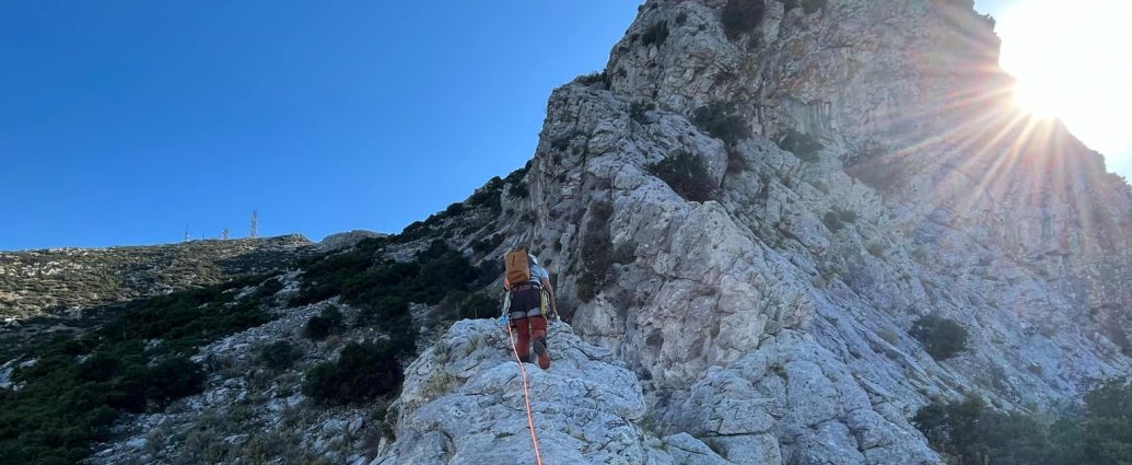 Εξοπλισμός: Μποντριέ, κράνος, ρεβέρσο, 3 καραμπίνερ ασφαλείας, δύο ιμάντες 60cm, ένα κορδονέτο 6mm x 60cm Ορειβατικό μποτάκι με το οποίο μπορούμε να σκαρφαλώσουμε ή παπούτσι approach (προαιρετικό για όποιον θέλει να νιώθει πιο άνετα τα αναρριχητικά παπούτσια) Σακίδιο μικρό (20L το πολύ) Νερό 1L Προσωπικά σνάκ Αντιανεμικό – αδιάβροχο Λεπτό fleece Παντελόνι πεζοπορίας Προσωπικό φαρμακείο